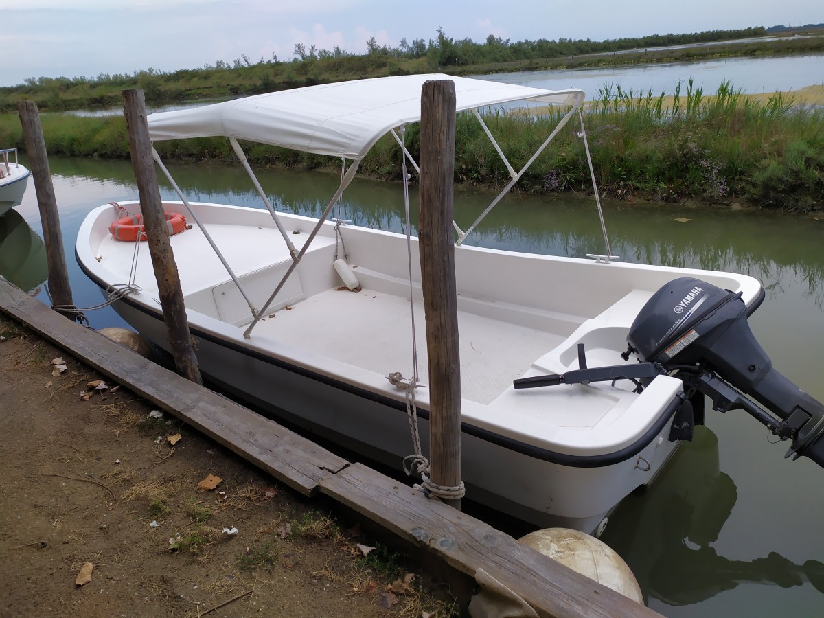 6 person motor boat for trips around the Venetian lagoon. La Barena farmhouse offers guests the opportunity to organise trips around the lagoon and the Venetian islands with motor boats to rent that do not require a boating license to operate.